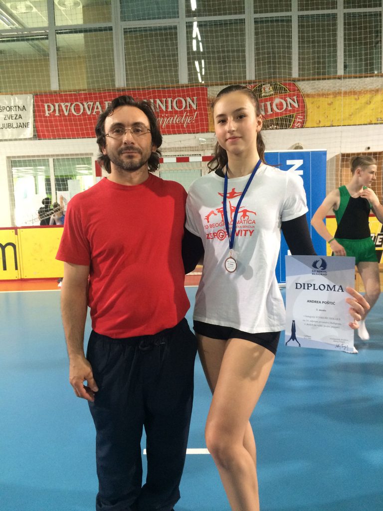 Istorija je ponovo ispisana i na sledećem takmičenju – 14. Otvoreno Prvenstvo Bežigrada – Ljubljana – Slovenija, kada je naša takmičarka Andrea Poštić osvojila bronzanu medalju u svojoj kategoriji, najbrojnijoj na takmičenju. Ona je postala prva takmičarka iz Srbije koja je osvojila medalju na olimpijskoj trambolini. Pored Andree, učestvovale su Hana Bokan, Sara Bokan, Ivona Škrbić i Jovana Veselinović sa trenerom Milošem Đorđevićem. Detalji su dati u biltenu u rubrici rezultati.