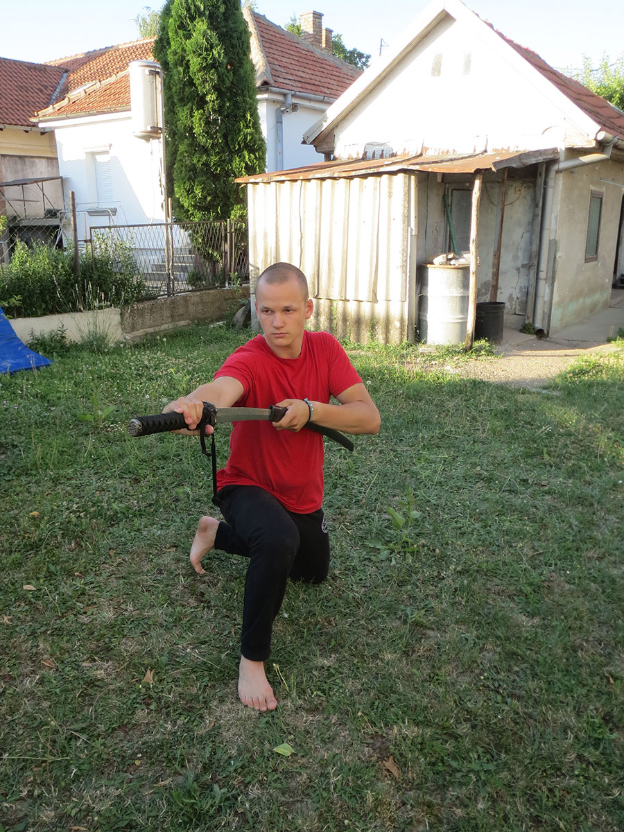 U radu koristimo obuku na upoznavanju korišćenja hladnog, pa i vatrenog oružja: štap-koplje, mač, nož, luk i strela, vazdušna puška i pištolj itd.